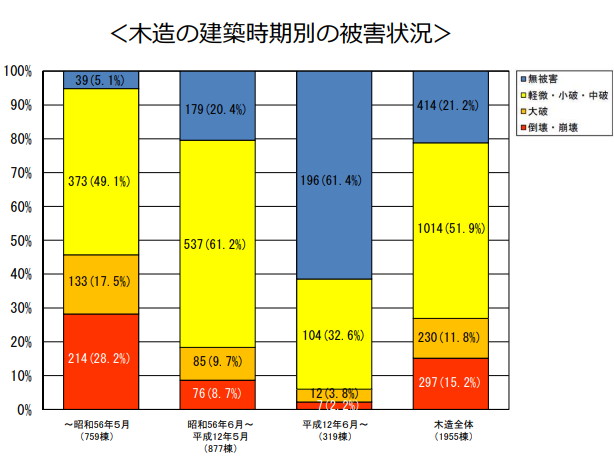 新耐震基準でも、全く被害がなかった木造住宅は2割でした。